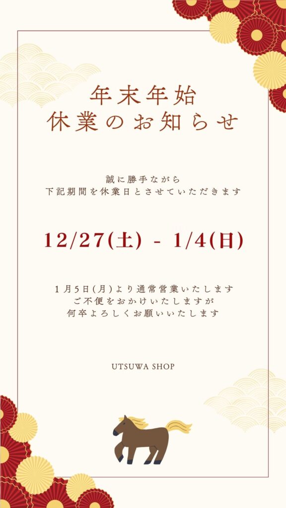 2025年12月27日(土)~2026年1月4日(日)・・・年末年始休業