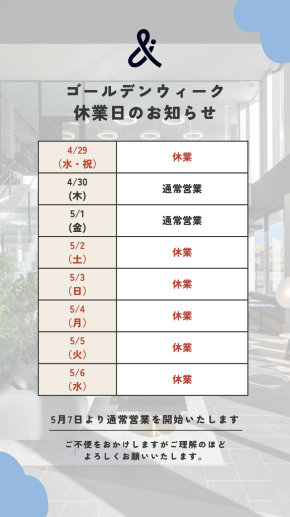 2026年度のゴールデンウィーク期間中の営業時間についてご案内いたします。
